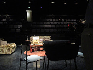 The photo that I took at the theatre yesterday, before I was told off, is quite dark. You can just about see that the seats opposite are empty, the performance ended up being full. It was taken from my seat and as you can see we at the front were almost part of the action!