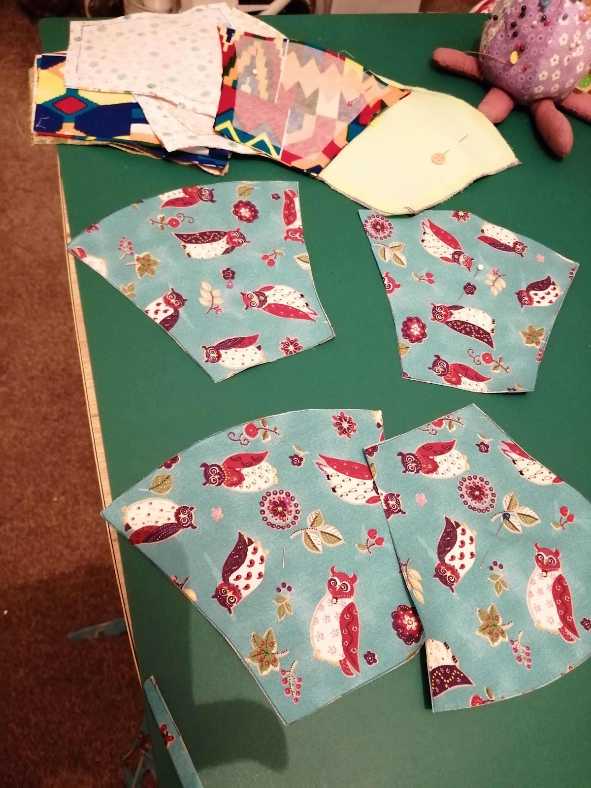 I started cutting out some masks yesterday as I have a feeling people may be wanting some extras. I bought and washed the owl material in Withernsea yesterday. I will carry on for a while this evening, I have one tape left of the book I am listening too. Hoping the knees will feel a little less painful tomorrow,