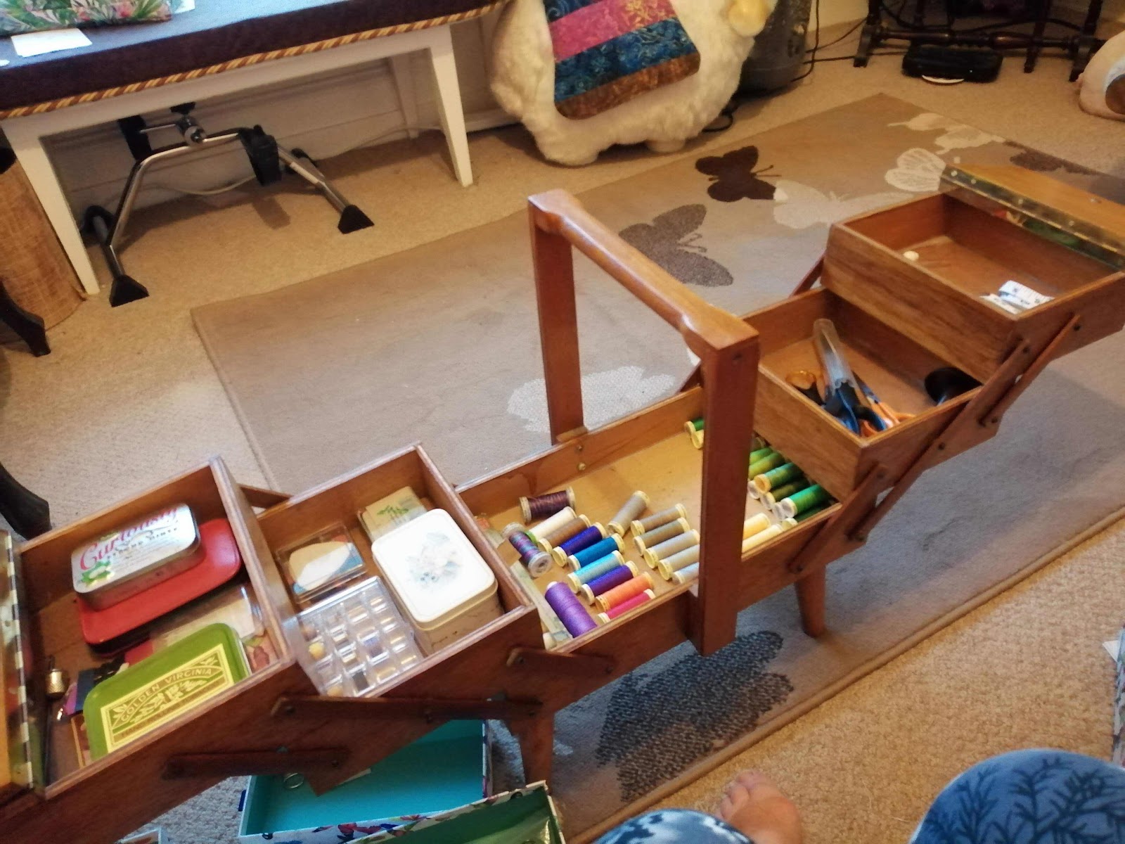 But have some photos and bits for today so here goes. Yesterday evening I started transferring things to the new to me sewing box, I really like it and it will be easier that pulling out little drawers!