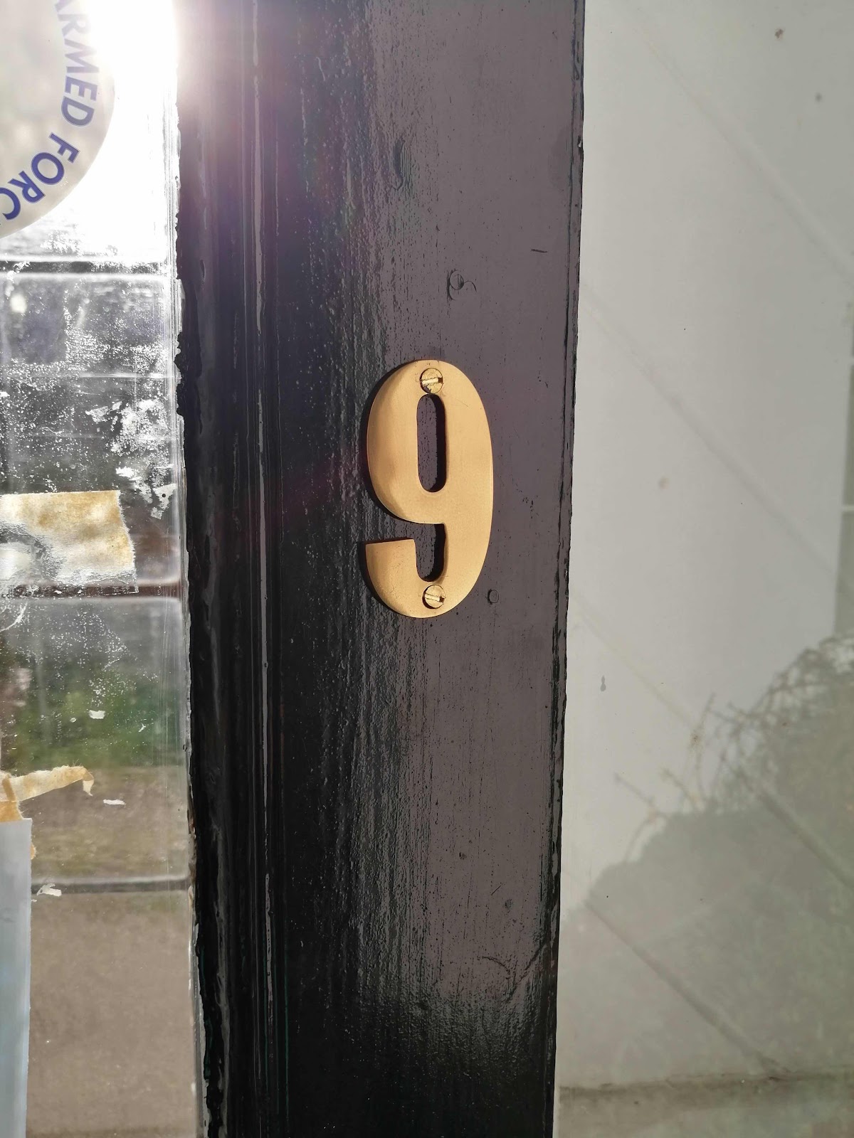 Last week when I went to Woods with Tina I bought a new brass number nine, it was on offer, as people are always asking us if it is number nine despite having the sign I painted in the front garden! The brass number has been sat on the stairs with us all ignoring it so I thought today it was time to get it onto the door! I wonder if callers will still ask if it is n umber nine.🤷♂️