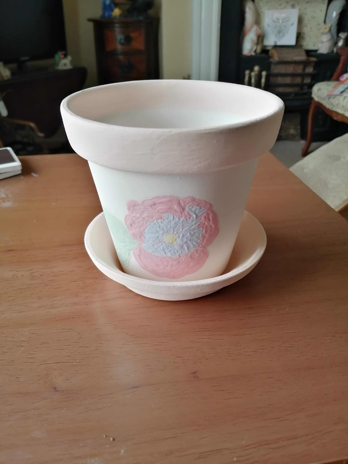 I quite like those pots, but I have to say the flowers do stand out more with the black liner. As you say, if you're doing a workshop with them you really need to be happy with the examples. I love the little birdhouse, very cute. The seahorse should look good too.