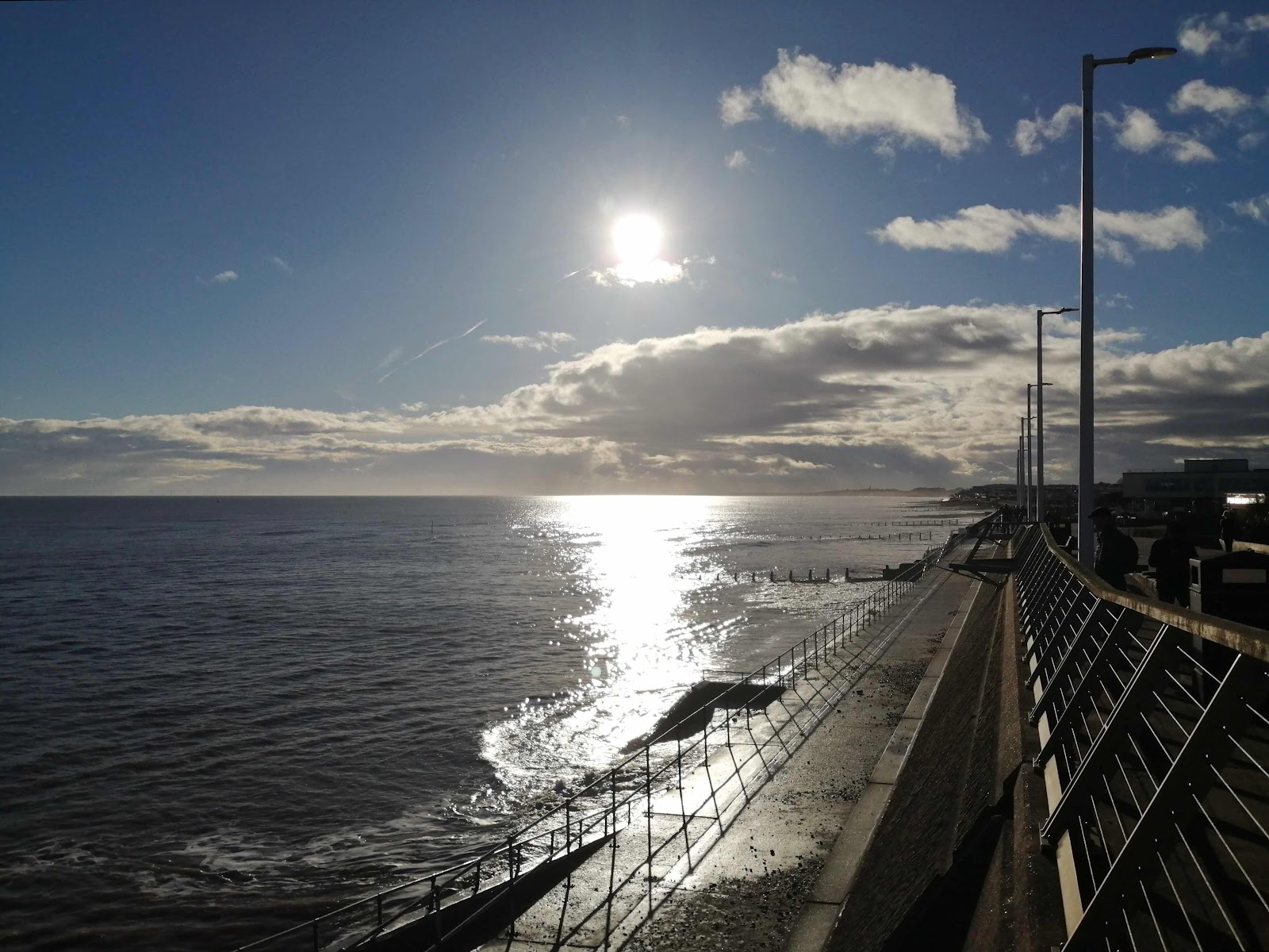 The tide was in and it was splashing against the se wall. I tried to get a picture of the spray but was facing the sun nd couldn’t see what I was taking, so no spry but an arty shot!