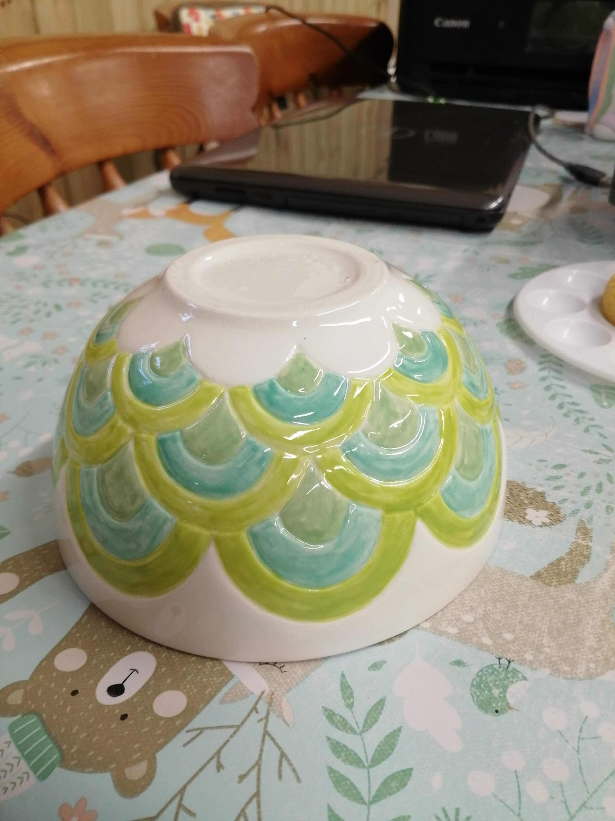 2. The colourful bowl and the dragonfly pot are mine, the green bowl and gecko are samples. Not sure what will be next on the agenda.