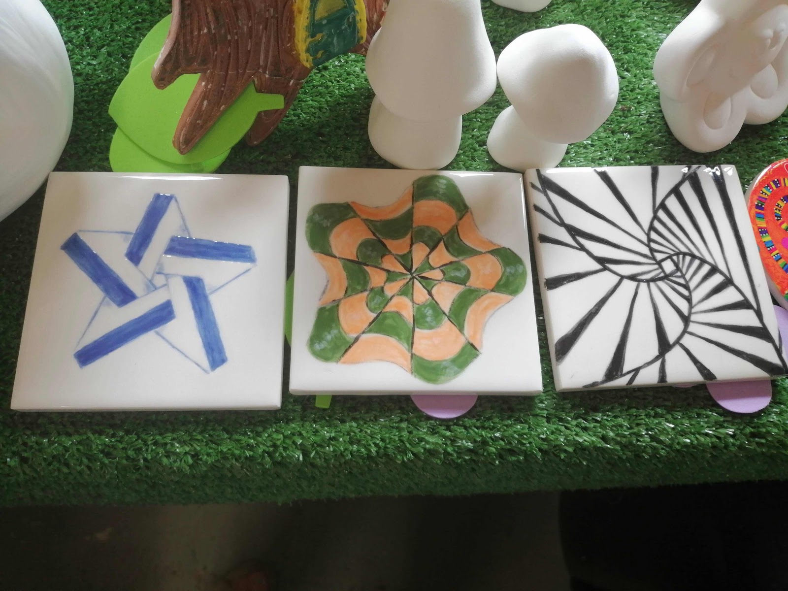 I thought I would start working on the landscape plate and realised that it was time to get some of my bottles of underglaze topped up. After lunch Darren drove me up to Freeport with the depleted bottles. Rob filled them up for me while we had q drink. Some of the coasters I had painted for the other workshop had been fired.