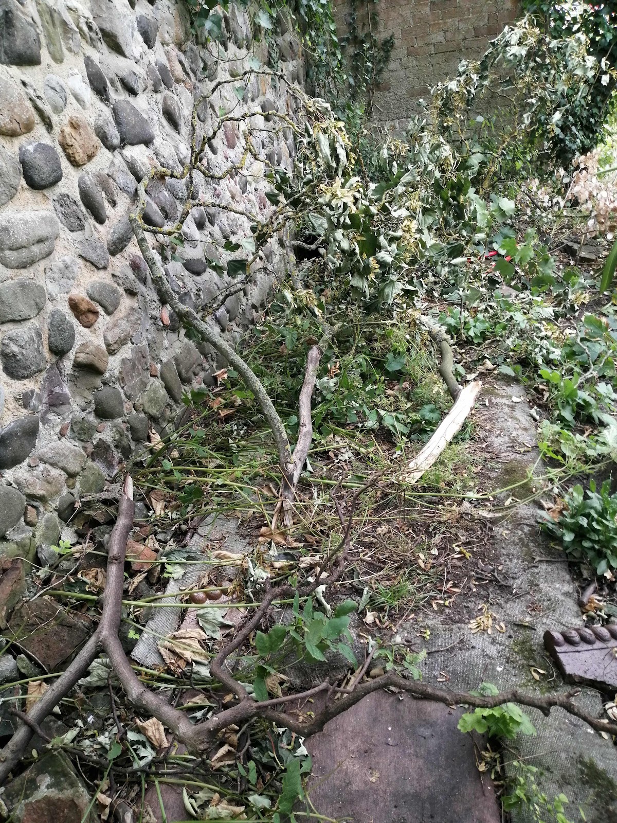 I had a really bad and pretty painful night but I am determined to stay with the bed. I have tried three nights now as my body and mind went to be in bed, a pity the legs don’t! So I felt tired and a bit down today. Did some washing and did get out into the garden for a while. I took before and after pics, but despite clearing lots of stuff they look pretty much the same, so not bothering with them. At the back by the wall there were some pretty big branches that had cone down from the tree that overhangs from the park. So I got those down onto the burning pile.When I came in there was a tiny insect on me, pretty one, one pic clearer than the other.