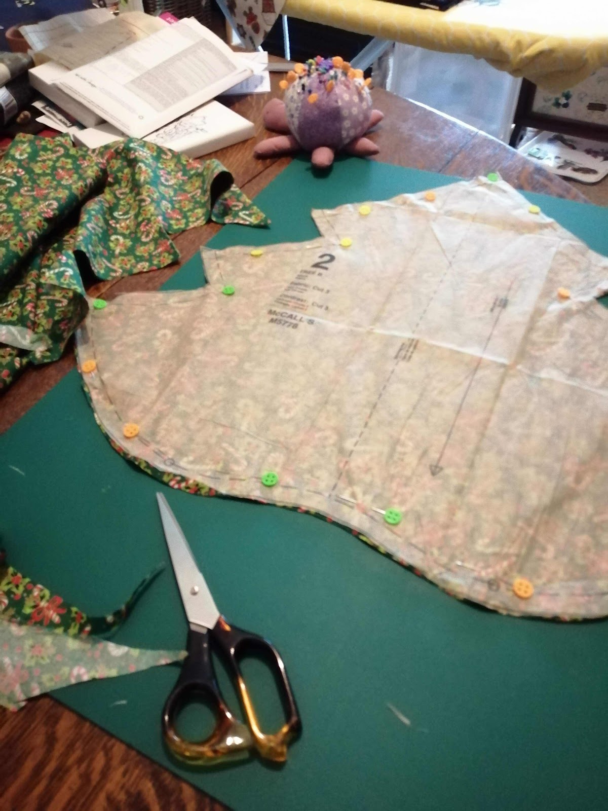 When I finished at the shop I went to Boyes to get some toy stuffing as I have a pattern and material to make a Christmas tree ornament that caught my eye. So got cutting out a bit this afternoon.