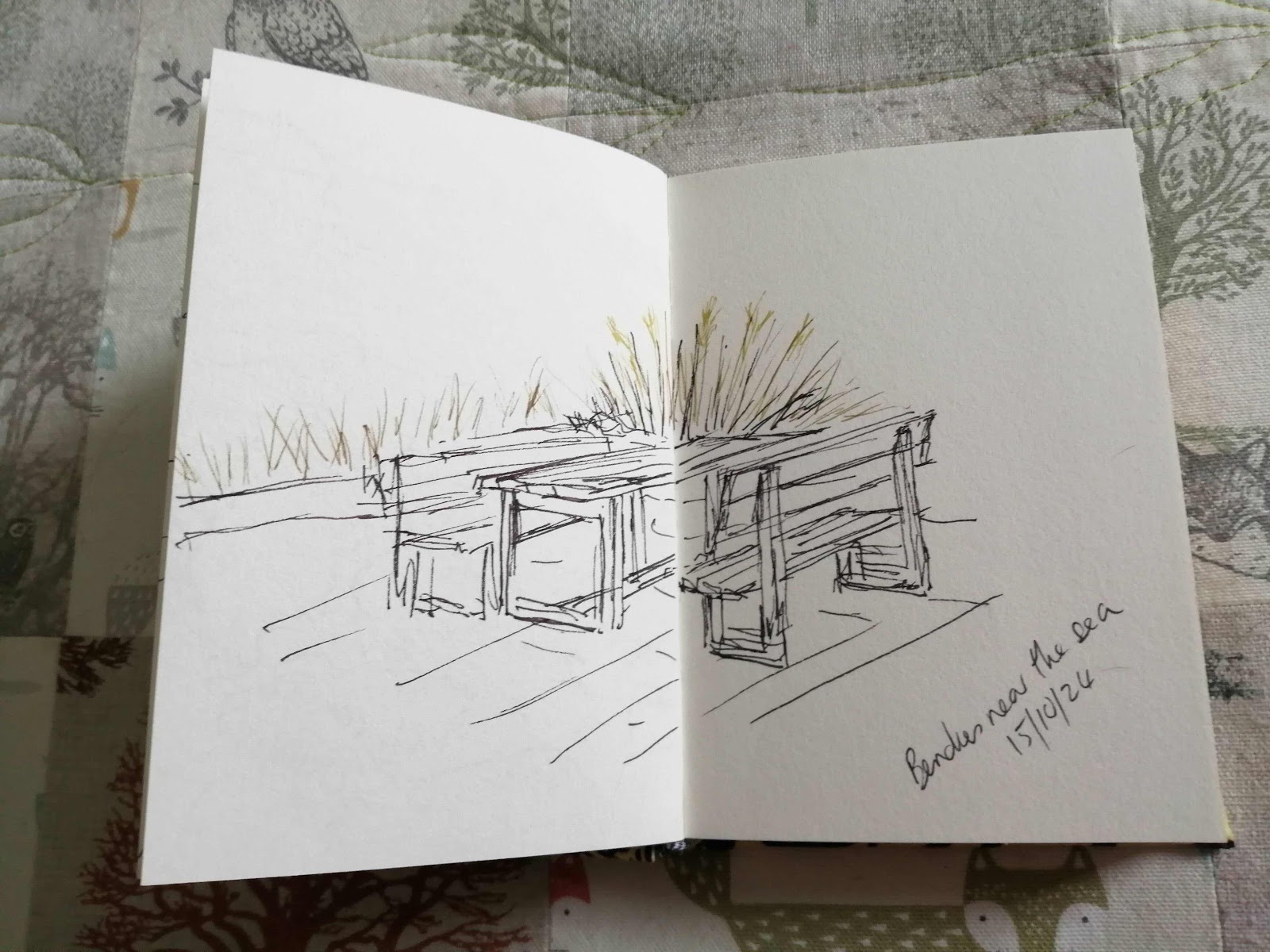 So a couple of photos of the sea, one of the leaves in the park and a couple of sketches. Not more waffling from me today.