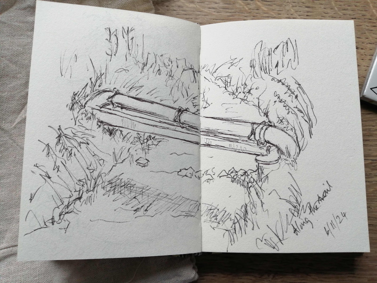 Another good sketch. I recognise the subject matter from a pic you must have taken at some point. Just a pipe, but nice.