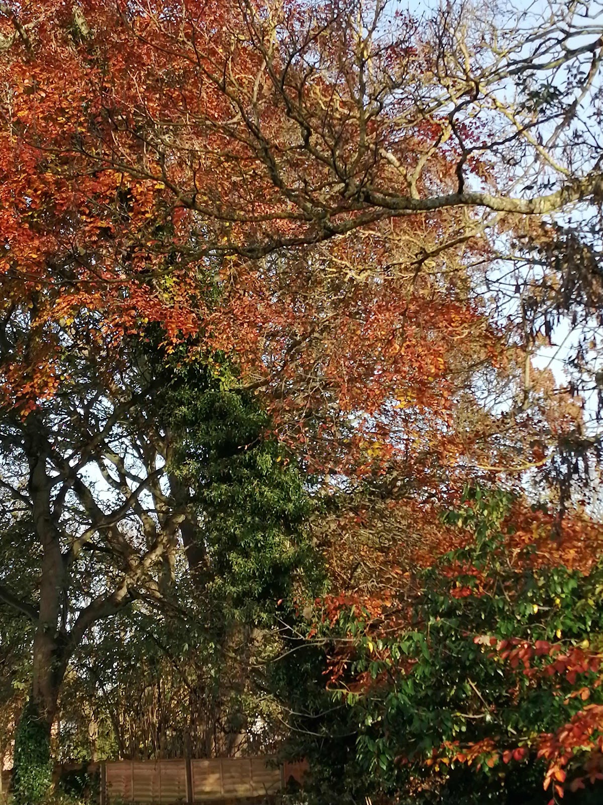 A short entry today. I went out to post a package quite early then was at the dentist a 10.45am. He did a bit more cleaning, not too comfortable around the loose tooth but it needed to be as clean as possible. It is now glued to the two adjacent teeth so no longer loose! It feels okay and he seemed happy with the result. After lunch I filled the garden bin with some spikes branches on the compost, when they dropped down the spikes are so strong that they kept going right through my garden shoes! Hopefully no more spiked feet now. The photo is about as autumnal as our garden gets!