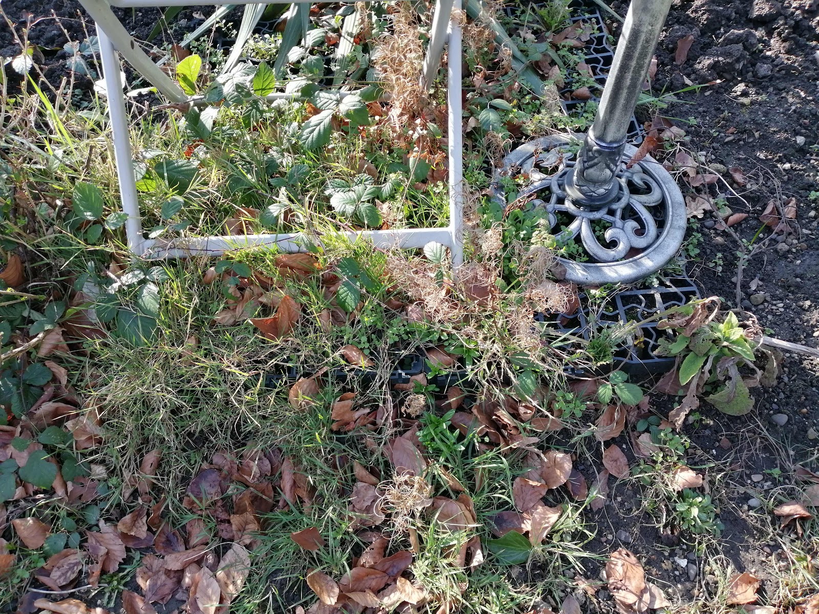 It took a while digging the middle fruit bush out, a large weed had grown through the centre of it and is made it difficult to get to the fruit last year,  the very large root of the weed wa entwined in the bush roots, no easy jobs in this garden! I work for a couple of hours again, haven’t managed to get the new plastic squares under the bird baths completely flat but it will do for now!